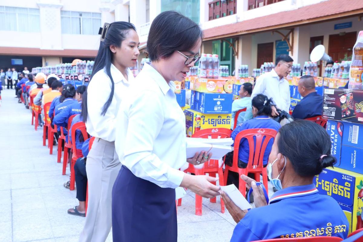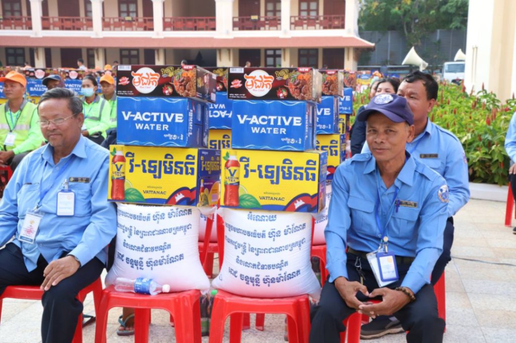 បុគ្គលិកសម្អាតអនាម័យ និងប្រជាការពារ ដែលបានបោសសម្អាតអនាម័យក្នុងព្រឹត្តិការណ៍នគរសង្ក្រាន្ត បានទទួលអំណោយជាថវិកា និងគ្រឿងឧបភោគបរិភោគពីថ្នាក់ដឹកនាំ។