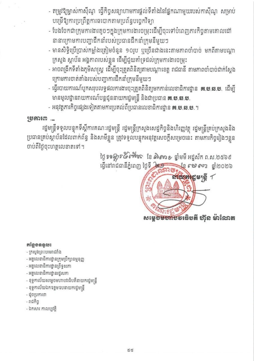 សេចក្តីសម្រេចនេះត្រូវបានចុះហត្ថលេខា និងចូលជាធរមានចាប់ពីថ្ងៃទី២១ ខែមេសា ឆ្នាំ២០២៦ តទៅ ។