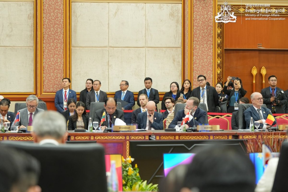 ប្រមុខការទូតកម្ពុជាបន្តបង្ហាញជំហររបស់កម្ពុជាចំពោះការគោរពបទឈប់បាញ់ និងច្បាប់អន្តរជាតិលើការដោះស្រាយបញ្ហាជាមួយថៃក្នុងកិច្ចប្រជុំរដ្ឋមន្ត្រីការបរទេសអាស៊ាន-សហភាពអឺរ៉ុប