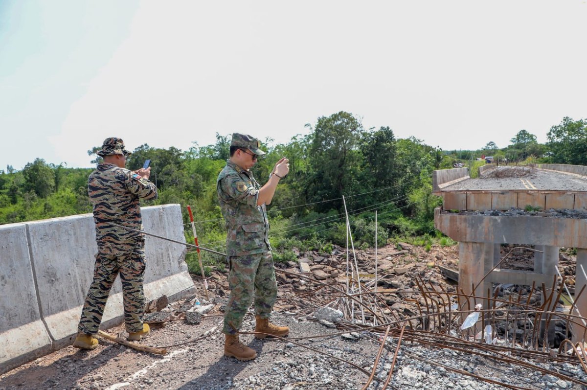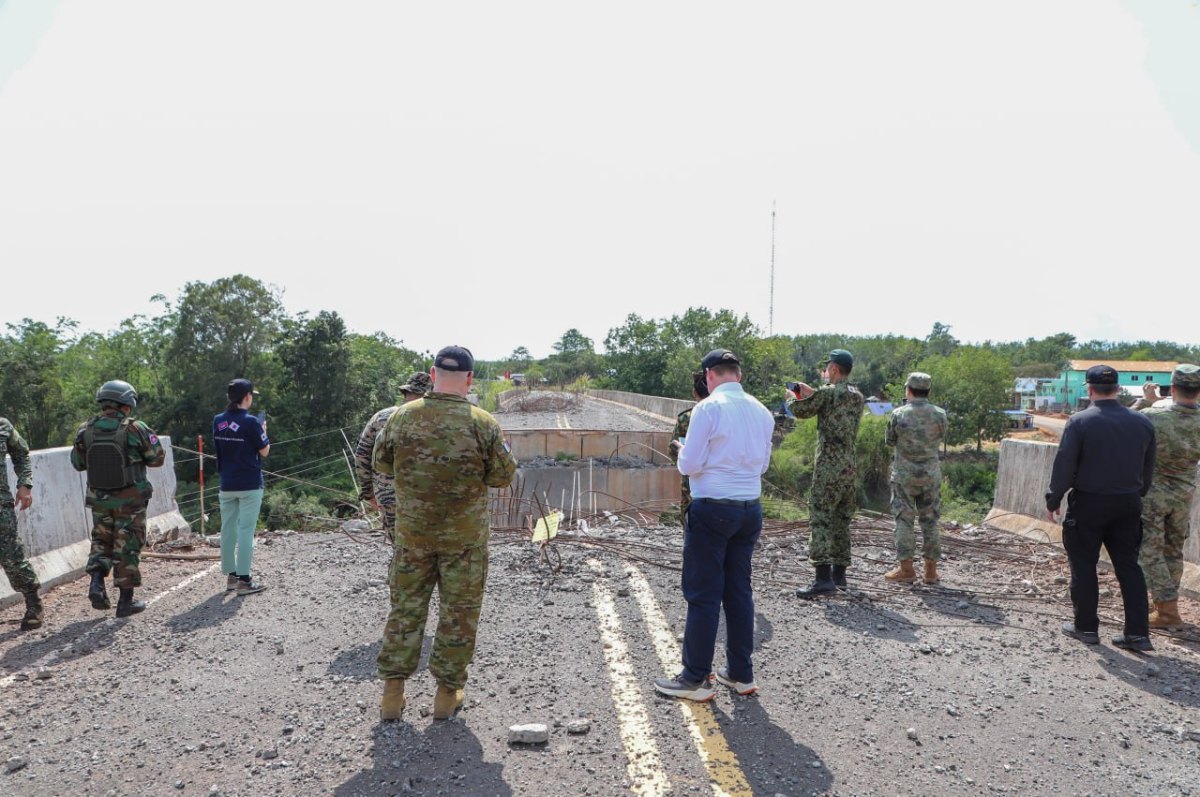 រសៀលនេះក្រុមអនុព័ន្ធយោធាបរទេសប្រចាំកម្ពុជា បន្តចុះសង្កេតការណ៍ និងផ្ទៀងផ្ទាត់អំពីស្ថានភាពនៅស្ពានស្ទឹងមេទឹក ខេត្តពោធិ៍សាត់
