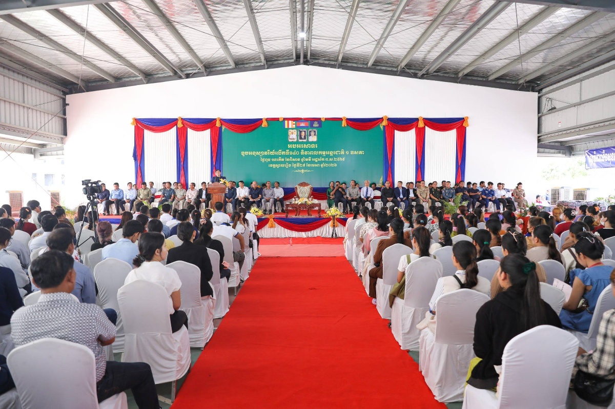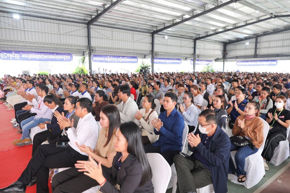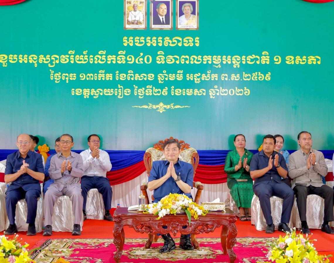 ស្វាយរៀង៖ នាព្រឹកថ្ងៃទី២៩ ខែមេសា ឆ្នាំ២០២៦ ឯកឧត្តម ហេង សួរ រដ្ឋមន្ត្រីក្រសួងការងារ និងបណ្តុះបណ្តាលវិជ្ជាជីវៈ បានអញ្ជើញជាអធិបតីភាព ក្នុងពិធីអបអរសាទរខួបអនុស្សាវរីយ៍លើកទី១៤០ នៃទិវាពលកម្មអន្តរជាតិ ១ ឧសភា ឆ្នាំ២០២៦ ក្រោមប្រធានបទ «រួមគ្នាកសាងភាពធន់ដើម្បីការងារសមរម្យ» ដែលបានប្រារព្ធឡើងនៅតំបន់សេដ្ឋកិច្ចពិសេសស្វាយរៀង ហ្គីហ្គា រីសស៍ ខេត្តស្វាយរៀង ដែលមានអ្នកចូលរួមប្រមាណជា ១ ៦០០នាក់។