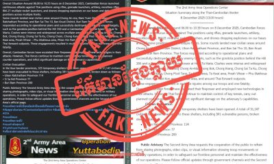 ព័ត៌មាន1 week agoឧត្តមសេនីយ៍ឯក ជួន ណារិន្ទ ដាក់បទបញ្ជាបន្ទាន់ឲ្យសមត្ថកិច្ចពាក់ព័ន្ធចុះបង្ក្រាបឲ្យអស់នូវមុខសញ្ញាក្រុមក្មេងទំនើង ក្នុងភូមិសាស្ត្ររាជធានីភ្នំពេញ