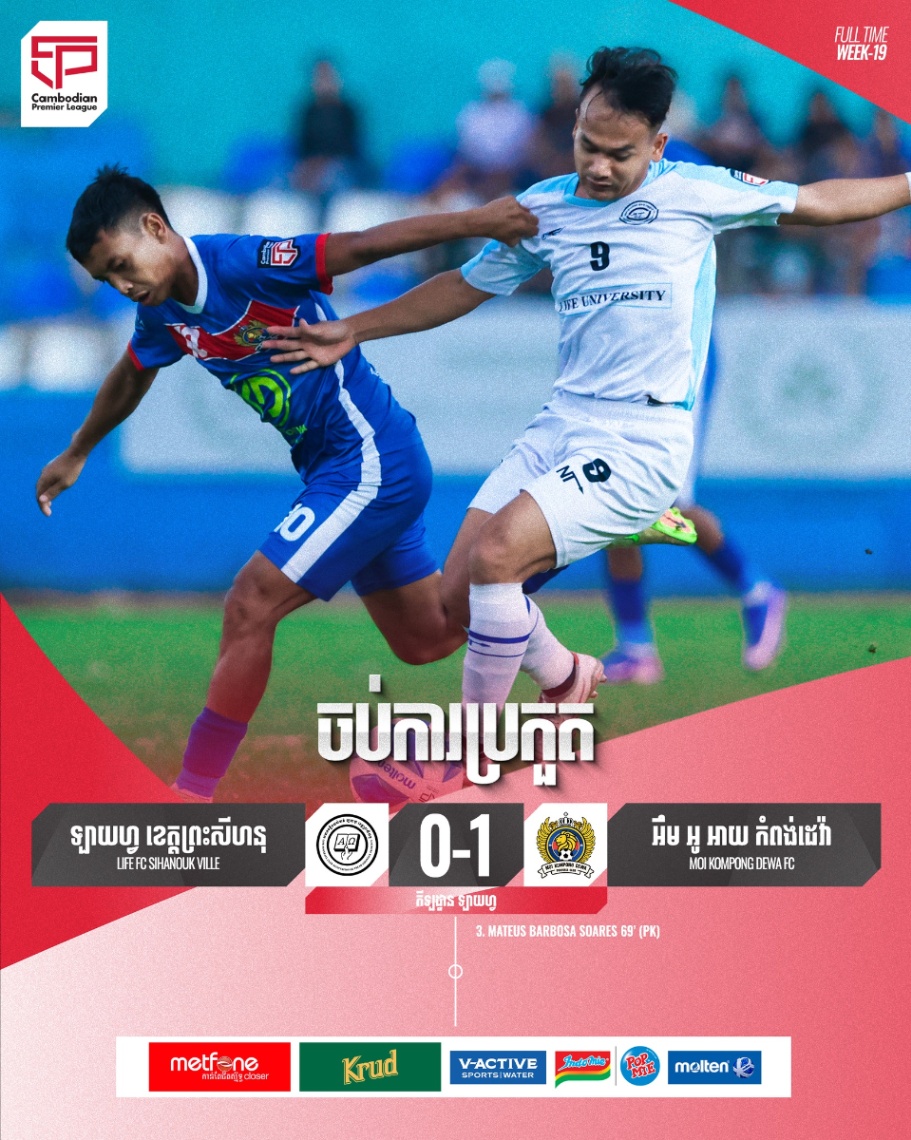 គ្រាប់ជ័យជំនះរបស់ភ្ញៀវ អឹមអូអាយ កំពង់ដេវ៉ា កើតឡើងដោយការទាត់បាល់ពិន័យ១១ម៉ែត្ររបស់ខ្សែការពារ MATEUS BARBOSA SOARES នាទីទី៦៩ ក្រោយពីកីឡាករអ្នកចាំទី សាយ ចាន់តុលា របស់ឡាយហ្វបង្ករកំហុសលើកីឡាករ ម៉ុន វ៉ាន់ដា។