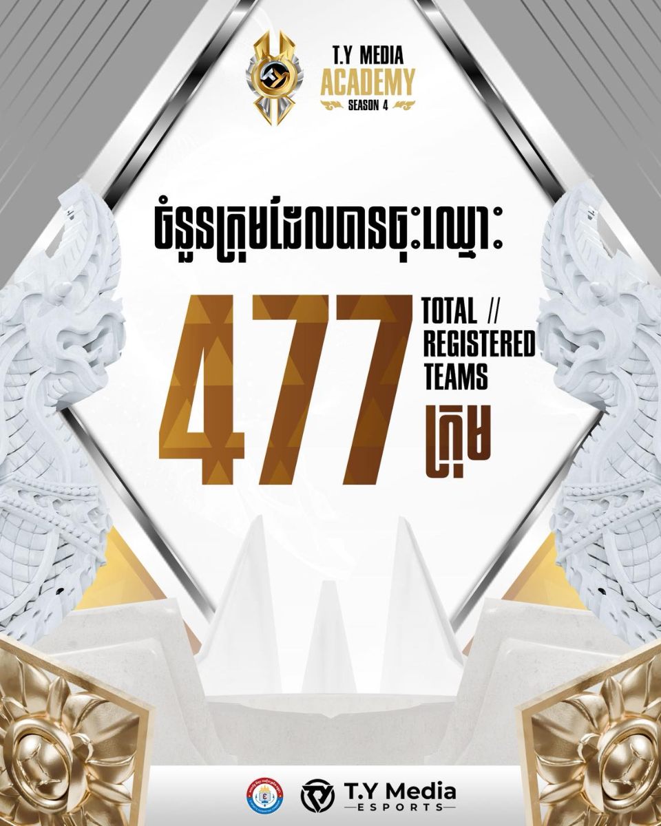 គួរដឹងថា ពានរង្វាន់ T.Y Media Academy រដូវកាលទី៤ គ្រោងនឹងធ្វើការប្រកួតជម្រុះពីថ្ងៃទី៧ ដល់ថ្ងៃទី១៤ ខែកុម្ភៈខាងមុខ ដើម្បីចម្រាញ់ក្រុមខ្លាំងៗឡើងទៅវគ្គ Knock-Out រហូតដល់វគ្គ Grand-Final ចាប់ពីថ្ងៃទី២០ ដល់ថ្ងៃទី២២ ខែកុម្ភៈ ឆ្នាំ២០២៦។ កាលពីរដូវកាលមុន ព្រឹត្តិការណ៍ថ្នាក់ជាតិ ដែលទទួលបានកិច្ចសហការ និងមានការគាំទ្រពេញទំហឹងពីសហព័ន្ធកីឡាអេឡិចត្រូនិកម្ពុជានេះ គ្រងជើងឯកដោយ Team TND បន្ទាប់ពីយកឈ្នះក្រុម WING E-Sport នៅវគ្គផ្ដាច់ព្រ័ត្រ ។ ដូច្នេះចាំមើលតើរដូវកាលថ្មីនេះ ក្រុមនឹងក្លាយជាម្ចាស់ពាន ក្នុងចំណោមបេក្ខភាពទាំង ៤៧៧ក្រុម? អត្ថបទ លី ឈុនឡា