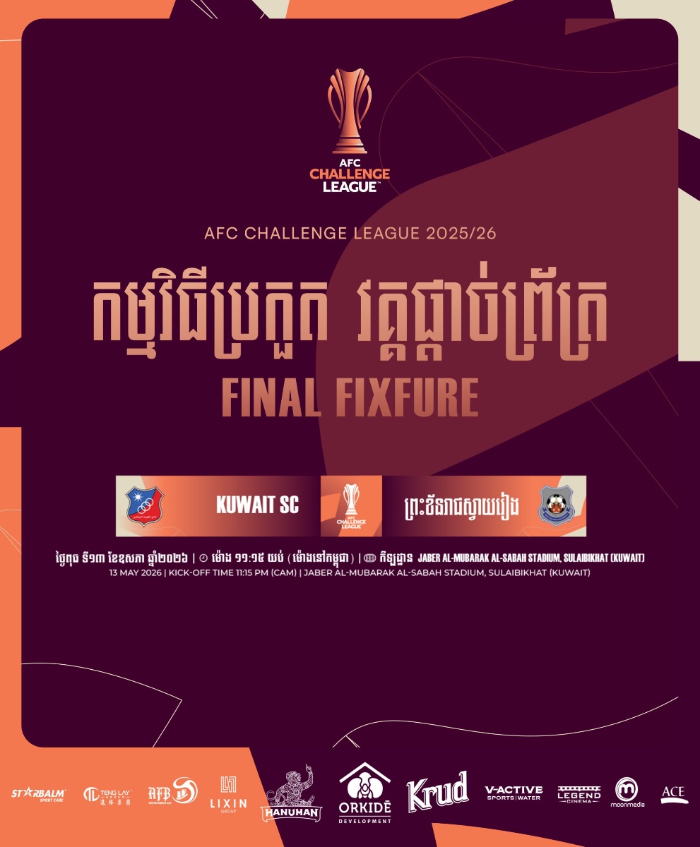 យោងកម្មវិធីប្រកួតរបស់សហព័ន្ធកីឡាបាល់ទាត់អាស៊ី (AFC) ផ្ញើជូនសហព័ន្ធកីឡាបាល់ទាត់កម្ពុជា (FFC) បានបញ្ជាក់ថា ការប្រកួតកីឡាបាល់ទាត់ជើងឯកក្លឹបអាស៊ីកម្រិតទី៣ (AFC Challenge League) វគ្គផ្ដាច់ព្រ័ត្រត្រូវលេងនៅប្រទេសគូវ៉ែត ថ្ងៃទី១៣ ខែឧសភា ឆ្នាំ២០២៦ ខាងមុខនេះ។